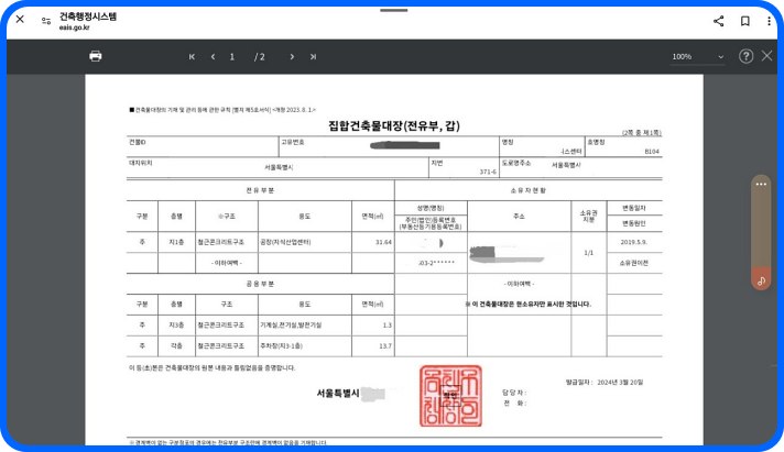 건축물대장에는 많은 정보들이 있습니다. 많은 건축물대장 중 오늘은 지식산업센터 기준으로 알아보겠습니다 보통 매매, 임대 계약등을 할 때 여러 정보를 확인하기 위해 필요로 하며 건물의 용도, 면적, 위치, 소유자, 사용승인날짜, 합법등을 확인합니다 처음 접해 보시는 분들은 어디서 발급받는지 무엇을 확인해야 하는지 잘 모를 수 있습니다 지금부터 발급 방법과 무엇을 확인해야 하는 건지 알아보겠습니다 정부 24와 세움터에서 무료발급 가능하며 오늘은 세움터에서 발급받아보겠습니다