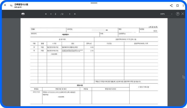해당 주소에 클릭하면 발급이 아래와 같이 됩니다 인쇄해서 부동산 거래 시 첨부해도 되고 열람만 해도 됩니다