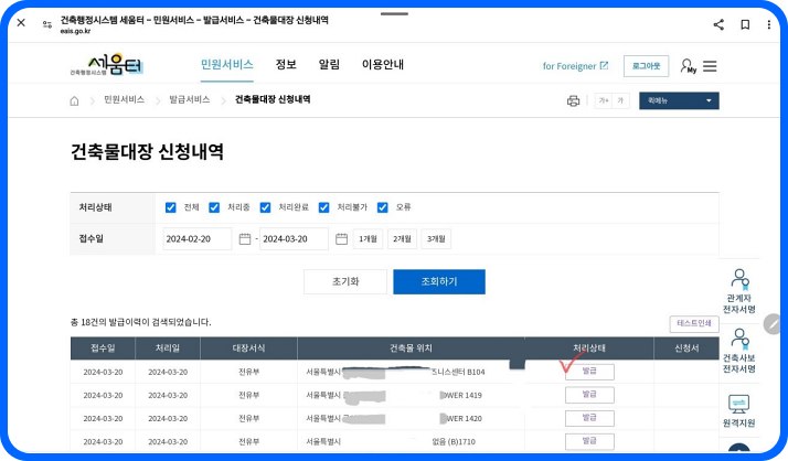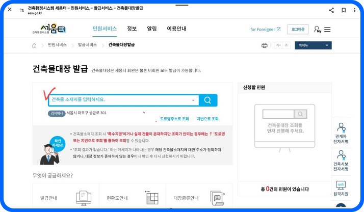 발급하려는 건축물 주소를 입력해 주고 검색을 클릭합니다