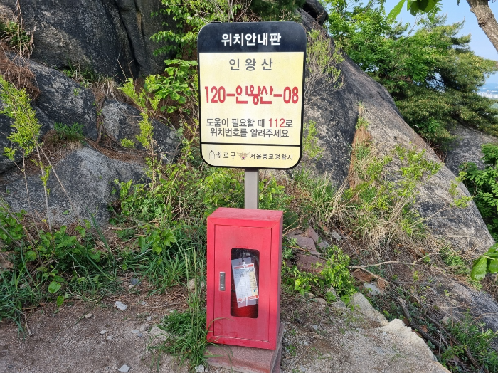 등산로를 따라 올라가다 보면 곳곳에 이런 위치 안내판과 소화기가 설치되어 있어요 혹시나 모를 응급상황에