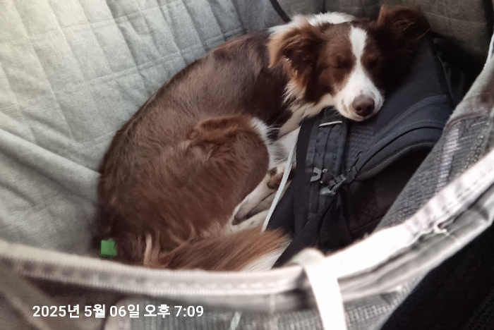 집으로 돌아가는 차 안 우리 댕댕이는 기절.. 모든 견주들의 마음은 이때가 제일 뿌듯~행복하지 않을까요?