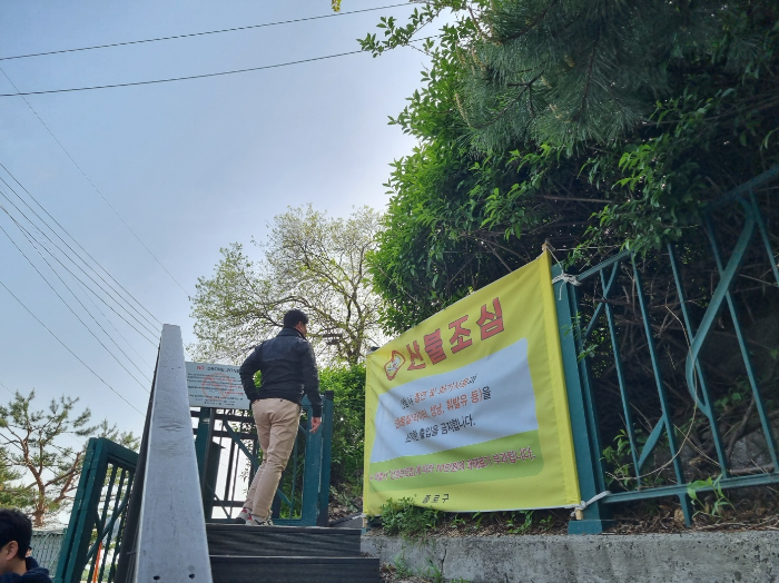 되어 있어요 입구 옆에는 산불예방을 위한 안내문도 큼직하게 붙어 있어요 지금 산불로 예민할 때잖아요 정말 조심